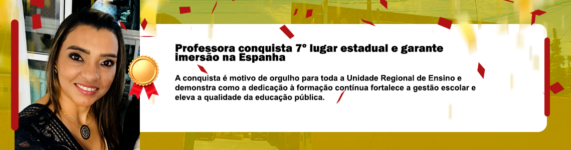 A Unidade Regional de Ensino celebra com grande alegria a conquista da professora e vice-diretora da Escola Estadual Maria José Barbosa Castro Toledo, Gislaine de Almeida Avelino Pellim, que alcançou o 7º lugar no Estado de São Paulo no curso Escola de Gestão, garantindo sua participação em uma imersão educacional na Espanha, no mês de fevereiro.